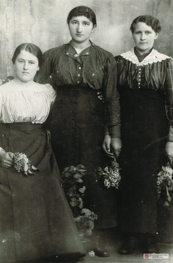 Od lewej Lusawa Antonina z Zawad. Bronisława Lewińska, córka wójta gminy Łaskarzew. Józefa (brak nazwiska) z Rębkowa. Fotografia pokazuje dużą więź przyjaźni pomiędzy kobietami. Może razem uczęszczały gdzieś do szkoły, lub po prostu utrzymywały ze sobą kontakt.