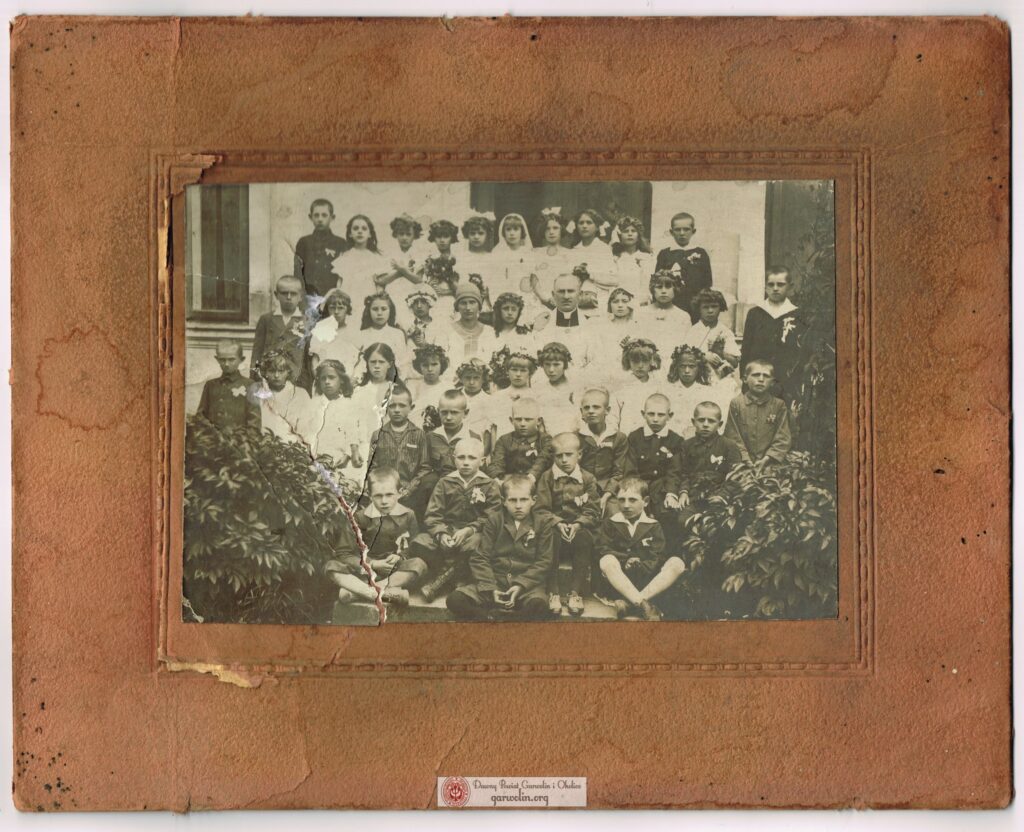 Pan Jerzy Duchna przekazał nam fotografię dzieci pierwszokomunijnych odnalezione w Michałówce przy rozbiórce domu. Zdjęcie zostało wykonane przed II wojną światową. Dzieci przystępowały do I komunii w Garwolinie. Widoczna jest również nauczycielka (NN) i proboszcz par. Garwolin ks. Marian Juszczyk (1887-1942), bestialsko zamordowany przez Niemców na drodze z Pilawy do Łucznicy 17 lipca 1942 r.