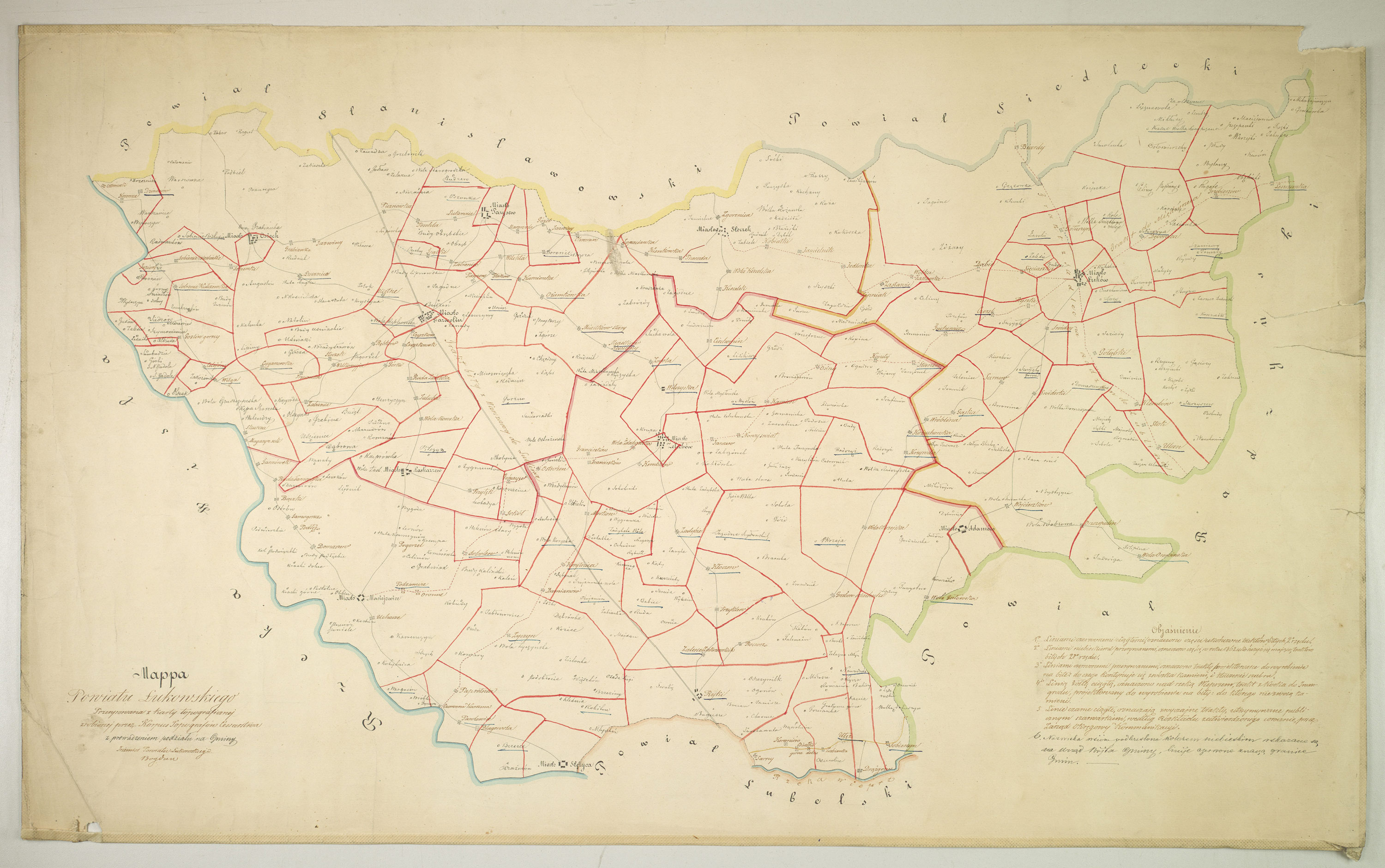 Dokładny opis mapy brzmi „Mapa powiatu łukowskiego, przerysowana z karty topograficznej, zrobionej przez Korpus Topografów Cesarstwa z prowadzeniem podziału na gminy„. Mapa nie posiada dokładnego datowania – dlatego przyjęty jest okres 1700-1900.