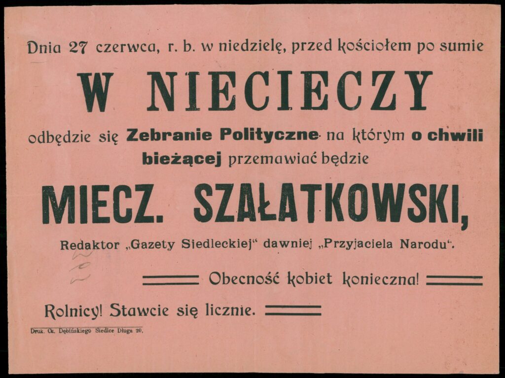 Ten plakat z Niecieczy Biblioteka Narodowa datuje na lata 20. XX w.