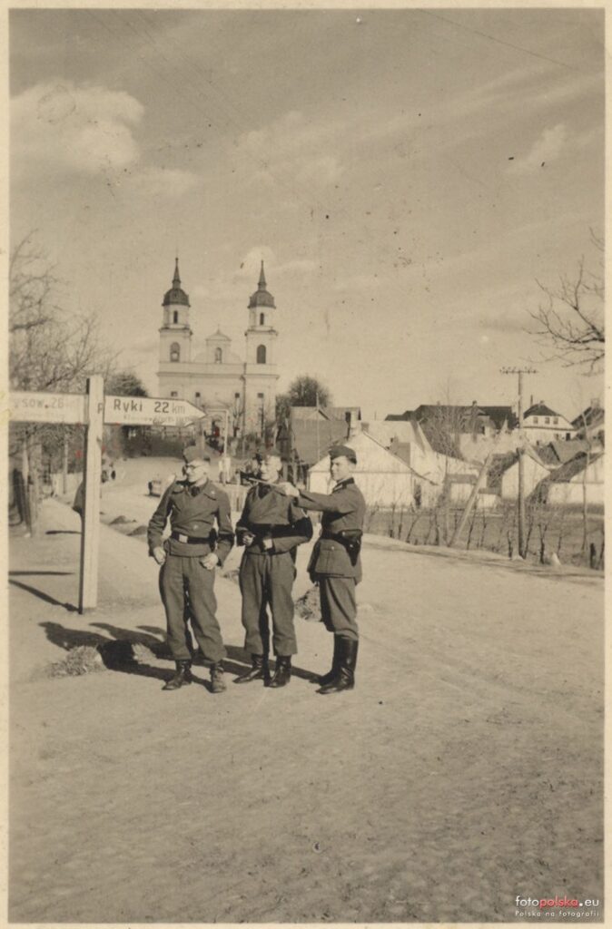 Żelechów w okresie II Wojny Światowej Żelechów w okresie II Wojny Światowej i niemieckiej okupacji. Skrzyżowanie ul. Długiej z drogą do Wilczysk. W oddali, górujący nad Żelechowem Kościół pw. Zwiastowania Najświętszej Maryi Panny. Źródło: Fotopolska Zobacz również:Z okresu II Wojny ŚwiatowejKościół w Garwolinie w okresie okupacji niemieckiej85 lat temu... Garwolin i Polska pogrążyły się w mroku wojnyMichalin vel. Gąsiory (gm. Żelechów)Żelechów Share: Twitter Facebook Google+ drogowskaz, II wojna światowa, Niemcy, Okupacja, Parysów, Ryki, Żelechów