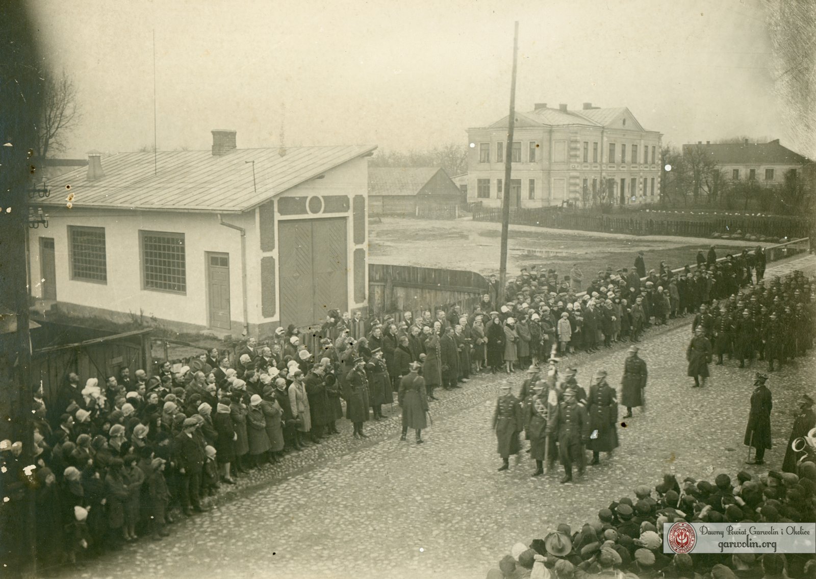 Zgadzamy się! Jest to podobne ujęcie wykonane z tej samej kamienicy p. Durakiewiczów w kierunku ul. Staszica. Na pierwszym planie tym razem poczet sztandarowy 1. Pułku Strzelców Konnych. W tle plebania i obecny Urząd Miasta.