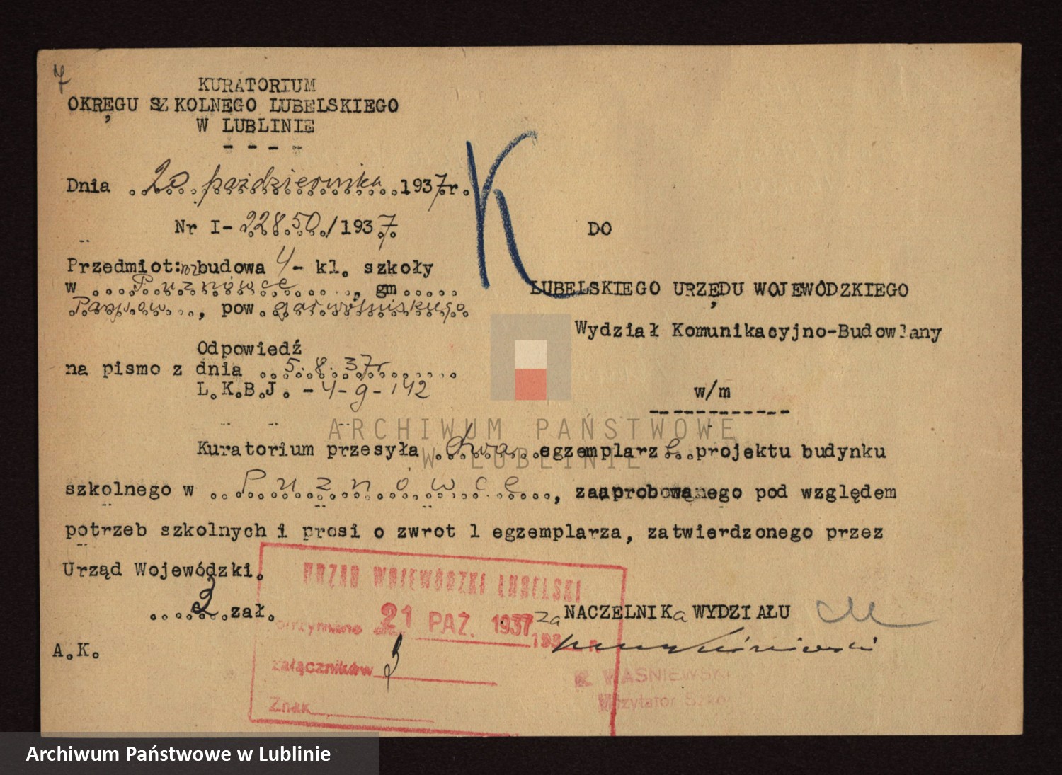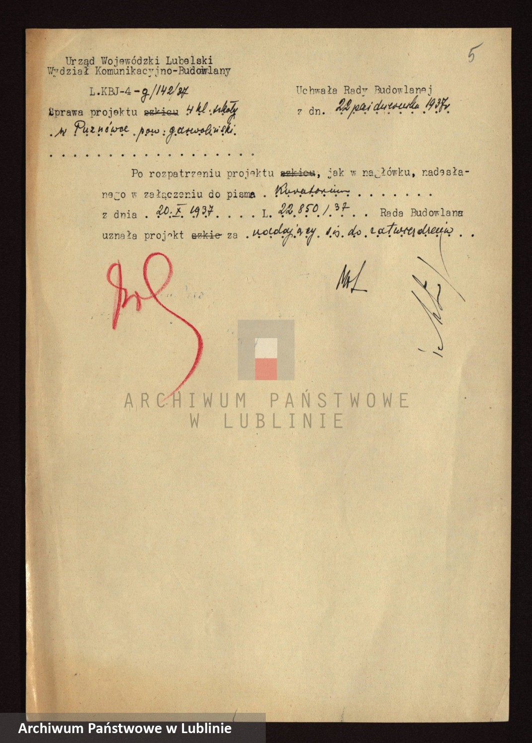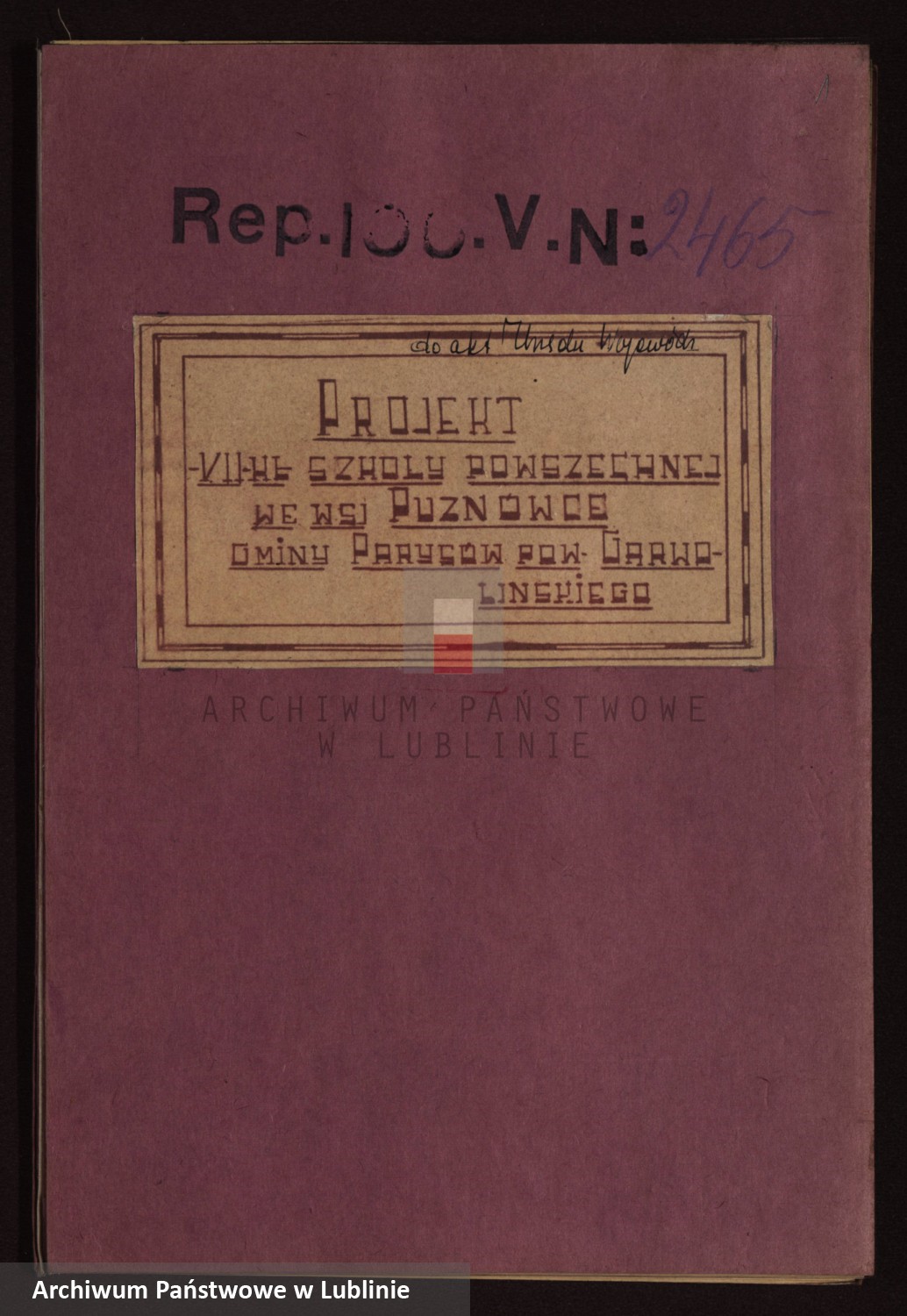 Projekt szkoły w Puznówce (1937) z Archiwum Państwowego w Lublinie