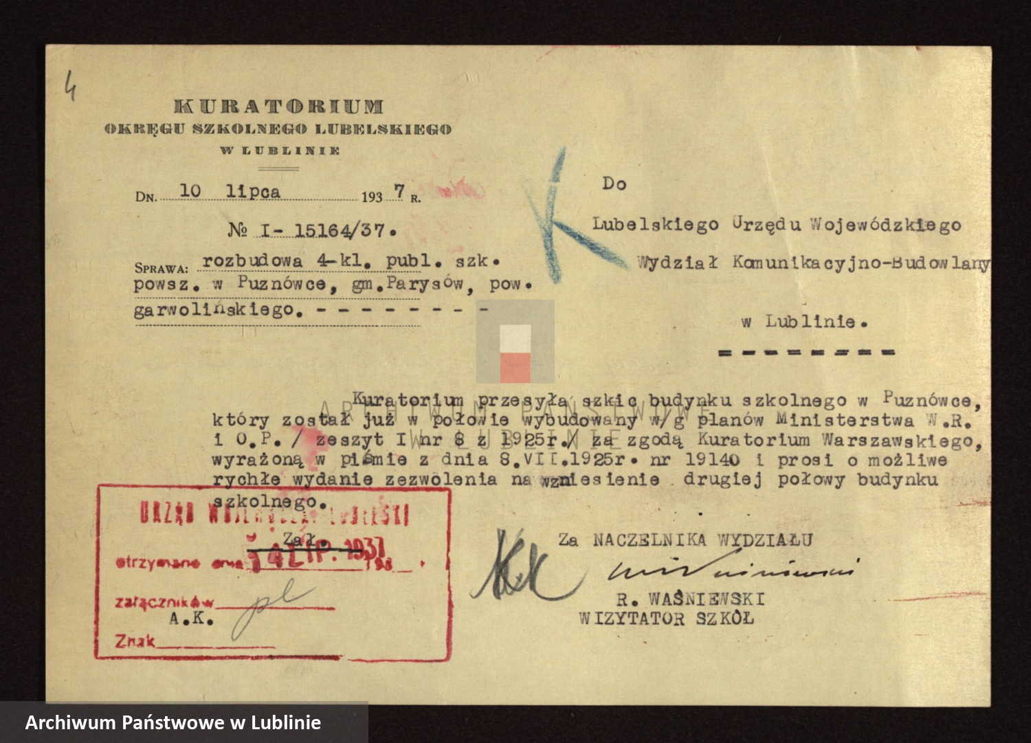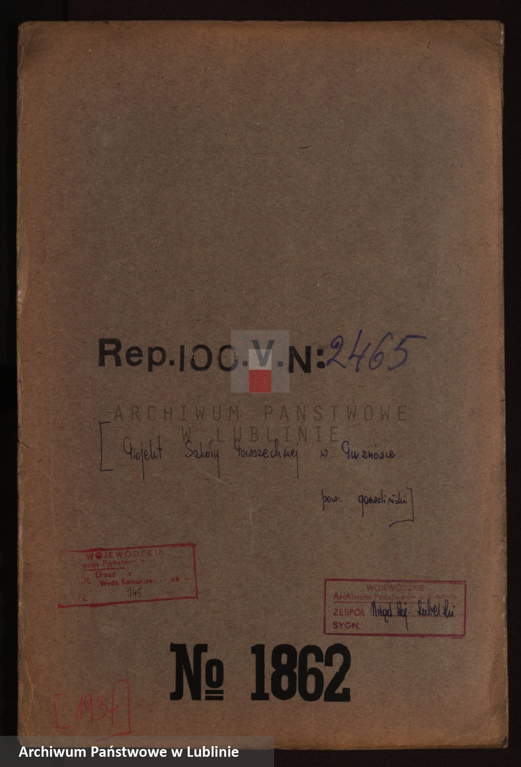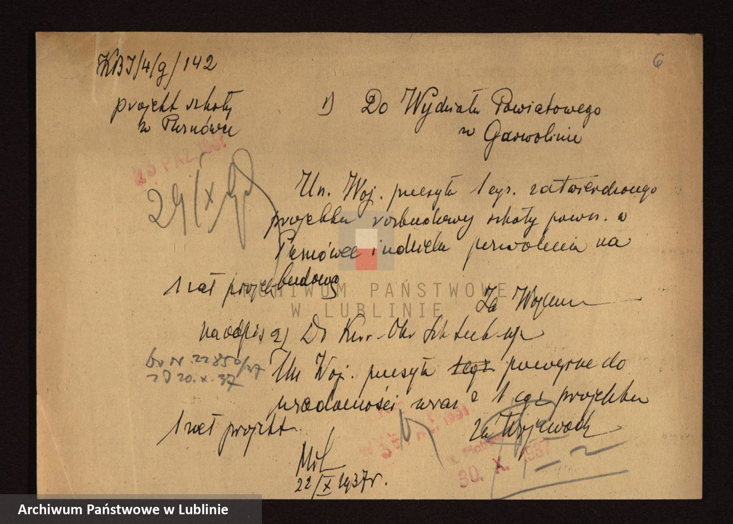 Projekt szkoły w Puznówce (1937) z Archiwum Państwowego w Lublinie