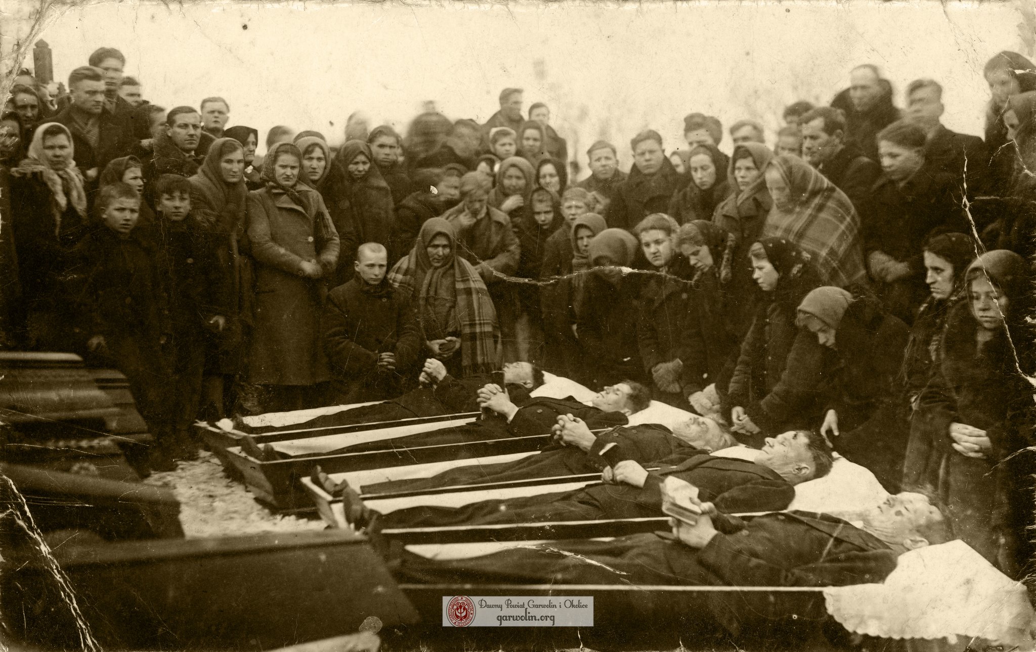 Dwie pierwsze fotografie przedstawiają (5+2) w sumie siedem trumien, co zgadzało by się z przekazem zabicia siedmiu rolników – osoby zgromadzone nad trumnami się zgadzają.